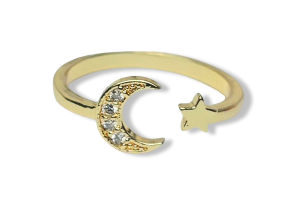 ANILLO LUNA Y ESTRELLA CIRCONAS DORADO
