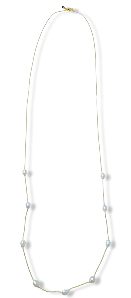 COLLAR PERLA ARROZ BLANCO Y CADENA LARGA DORADO