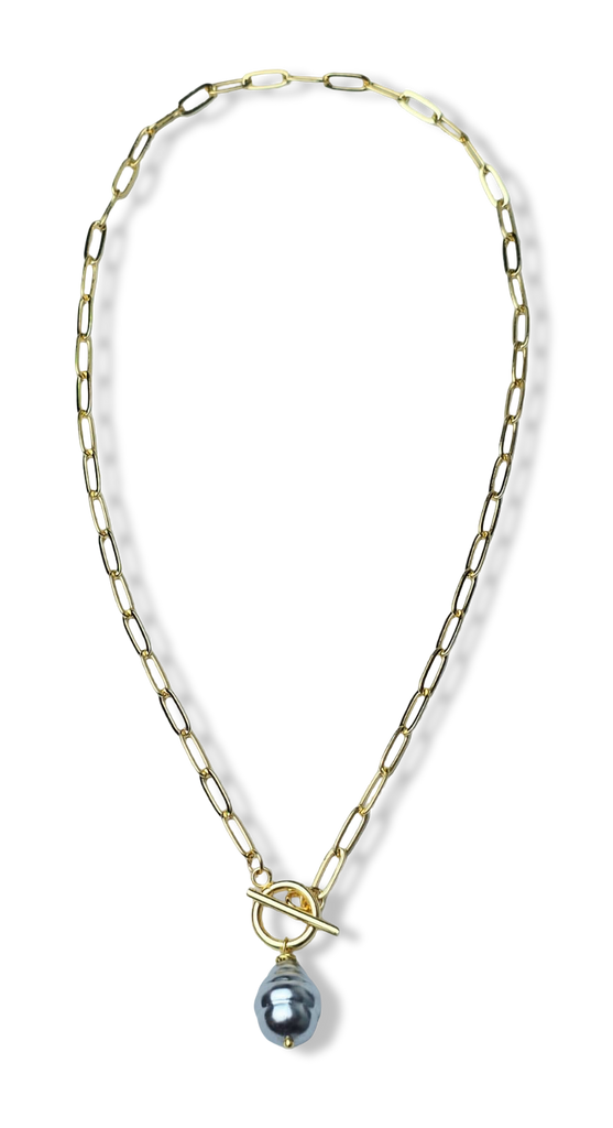 COLLAR CORBATÍN GRIS POLVO DE PERLAS DORADO