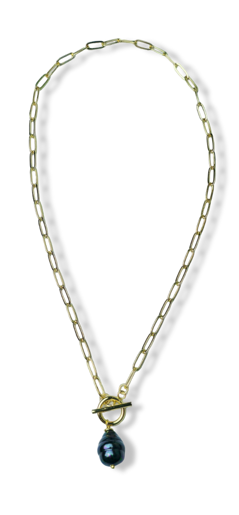 COLLAR CORBATÍN NEGRO POLVO DE PERLAS DORADO