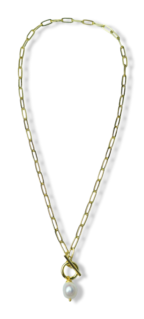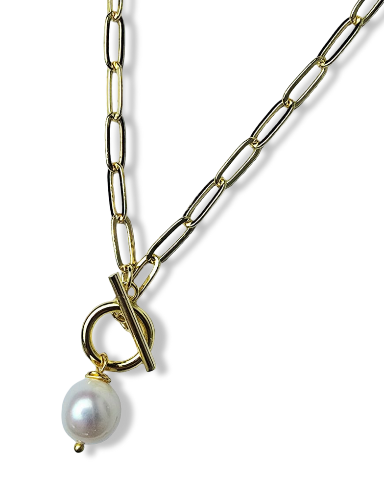 COLLAR CORBATÍN PERLA ROUND DORADO
