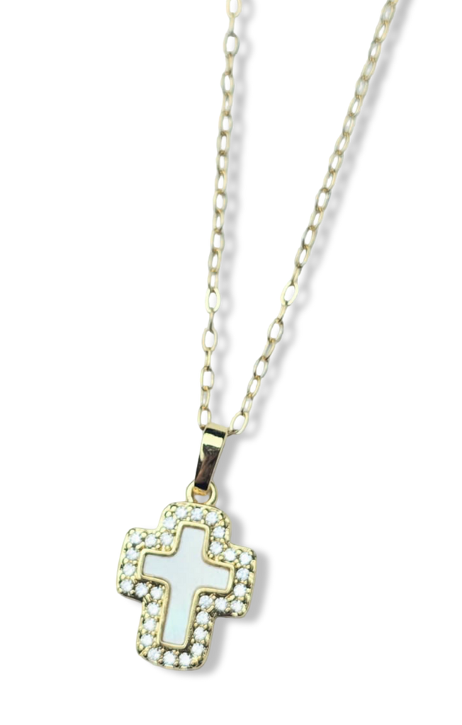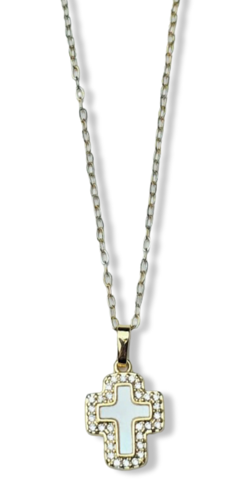 COLLAR CRUZ EN MADRE PERLA DORADO