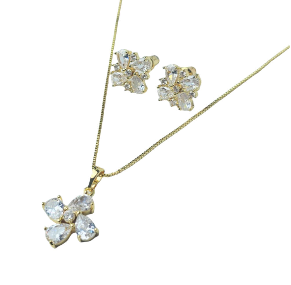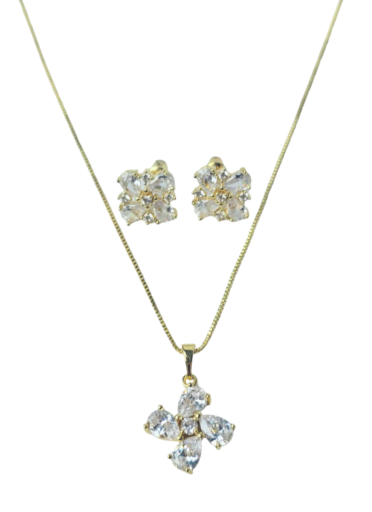 SET CRISTAL FLOR CUATRO PETALOS DORADO