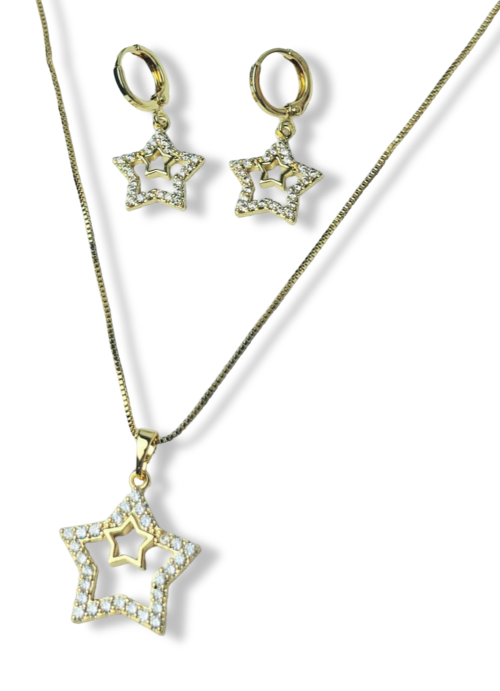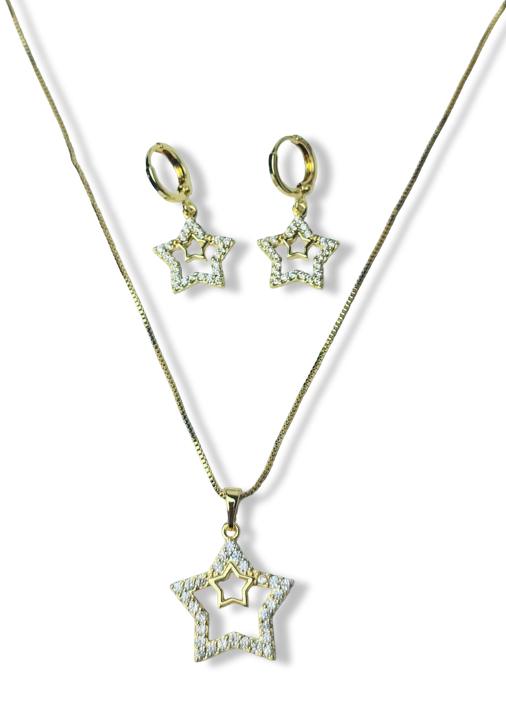 SET DOBLE ESTRELLA CIRCONIA DORADO