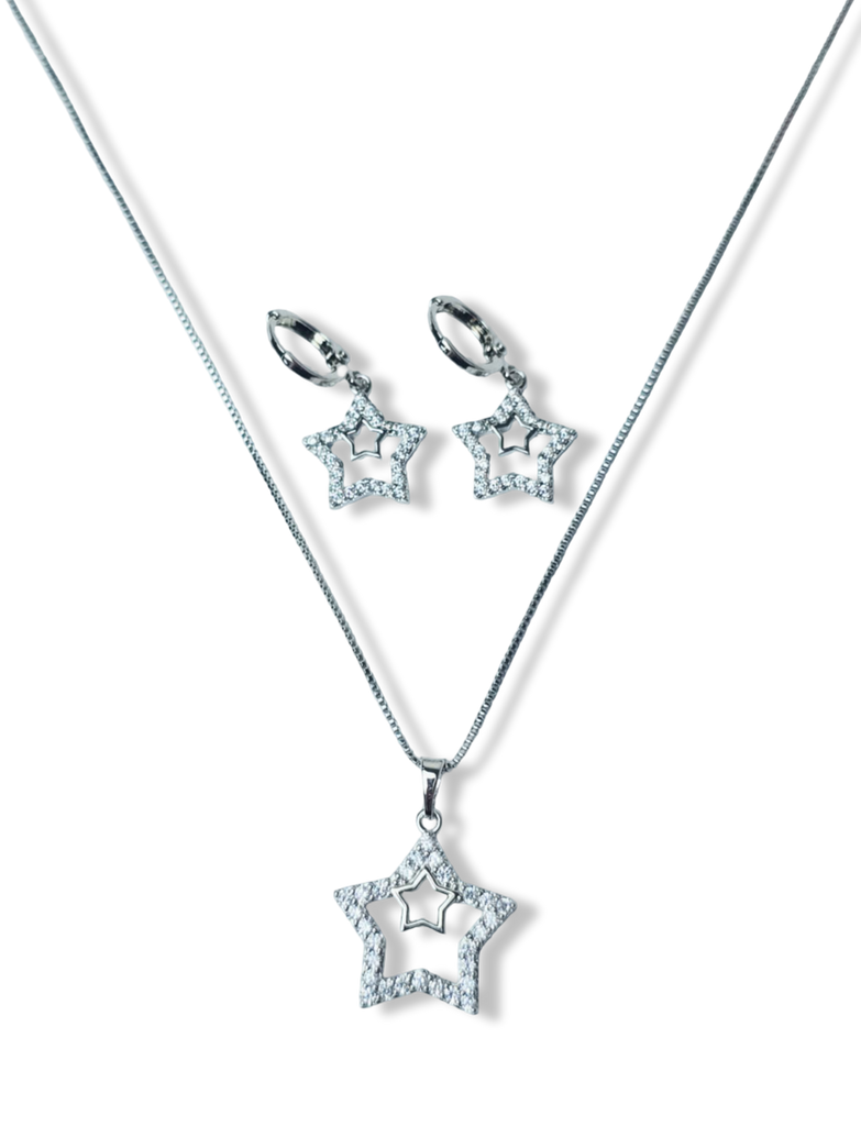 SET DOBLE ESTRELLA CIRCONIA PLATEADO