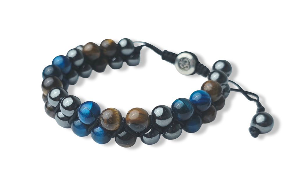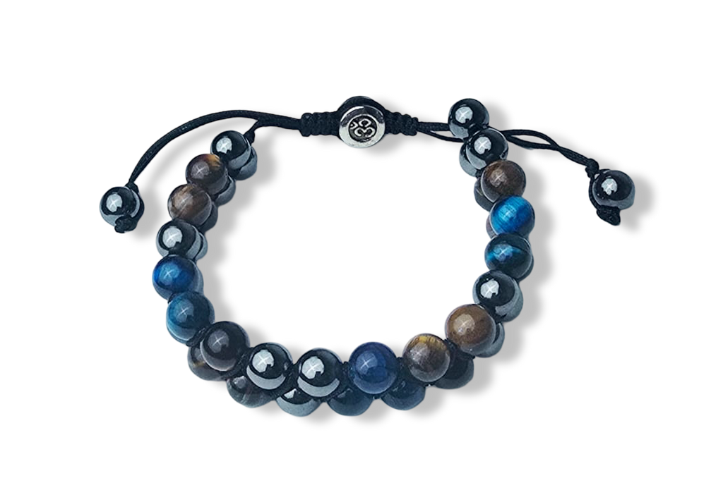 PULSERA  HEMATITA Y OJO DE TIGRE AJUSTABLE